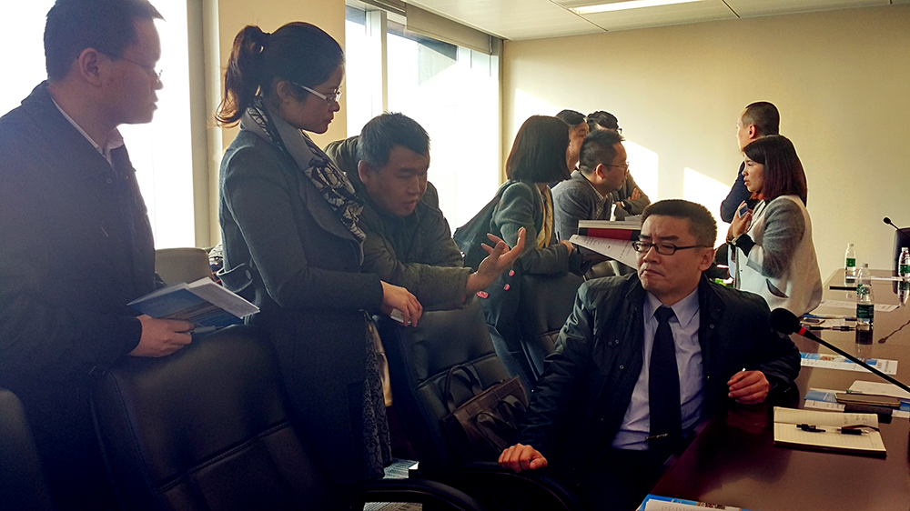 圖四 廣州南沙投資咨詢有限公司投資服務部總經理李松寧與企業深入討論