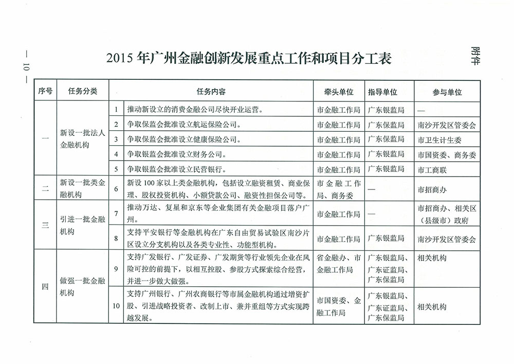 廣州南沙2015年金融創新發展重點工作實施方案