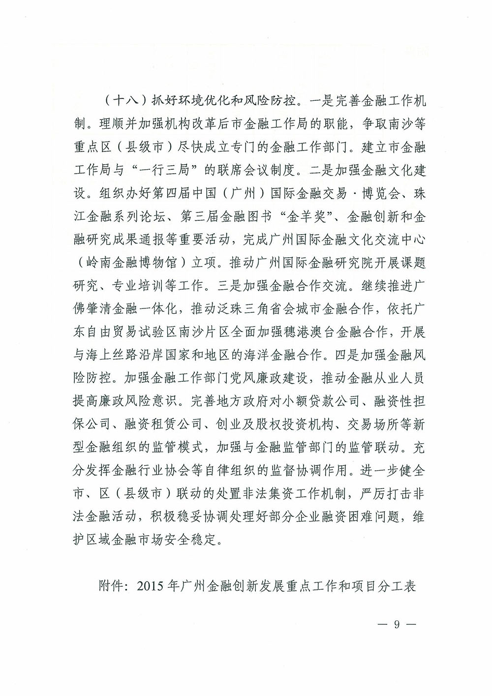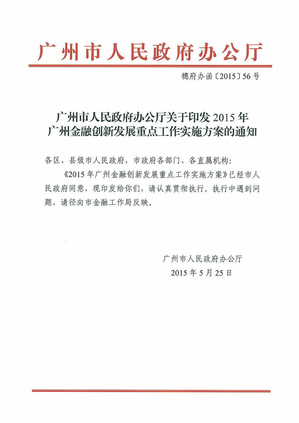 廣州市人民政府辦公廳關于印發2015年廣州金融創新發展重點工作實施方案的通知